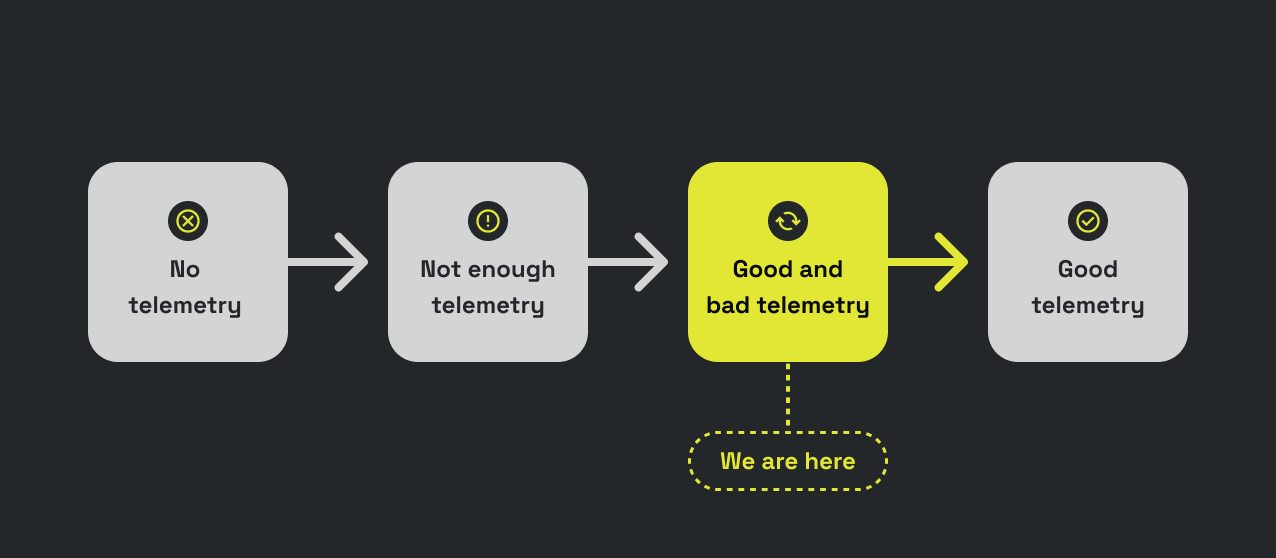 The question that remains is: how do we show “progress”? Are we really better off with good telemetry, or can we just survive with bad telemetry? Instinctively, we know that good telemetry is more efficient than bad telemetry, but we should be ready to measure the impact.
